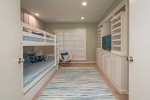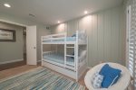 The second bedroom downstairs has a bunk bed with trundle, plantation shutters, a lot of storage and a new Roku TV.