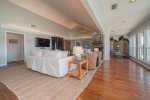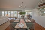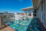 The main living area is located on the second floor with a wall of windows overlooking the canal and Little Bay. The over-sized living, dining and breakfast area have an open concept with plenty of seating for dining, relaxing, and playing games. A large variety of games and puzzles are available to please all ages including mahjong, poker, Rummikub, Scrabble, Yahtzee, Life, Bunco, dominoes, cards, puzzles and more for you to enjoy. There is also a reading nook with a view and a large assortment of books. The upstairs deck has an outdoor dining table that seats eight (8) and a sunning area with two lounge chairs.