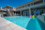 The outdoor kitchen/bar boasts a brand-new large Blaze gas grill, two (2) drink refrigerators, sink, built-in ice bin and is stocked with bar ware, Ninja blender, utensils, and an oversized pot for a fish boil. In addition, there are beach/water accessories including kayaks, a large water Lily Pad float, noodles, beach towels, beach chairs and more for your pleasure. The swimming pool has a maximum depth of 3 ½ feet and the hot tub is 4 feet deep.