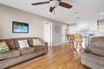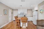 Dock Holiday has a wonderful fully equipped kitchen that includes cookware, Keurig Coffee Pot, pots, pans, and all the utensils you need to make your own meals or enjoy take-out food from any of the several nearby restaurants. A full-size washer and dryer, large closets, a flat-screen TV and Wi-Fi, high-speed Internet, and free parking are all included.