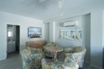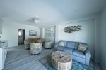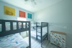 The master bedroom has a comfortable king bed, large smart TV and beautiful nautical décor. The master bathroom offers a duel sink vanity and duel walk in shower, as well as separate water closet for bathroom privacy. The second bedroom has a king bed and smart TV, as well as plenty of closet space to store all of the treasures you may find exploring the gulf coast. The colorful third bedroom has 2 sets of twin bunk beds for the kids to rest after a long day at the beach. The second bathroom is right off the living room and is shared between the second and third bedrooms, it offers a large walk in shower as well.
